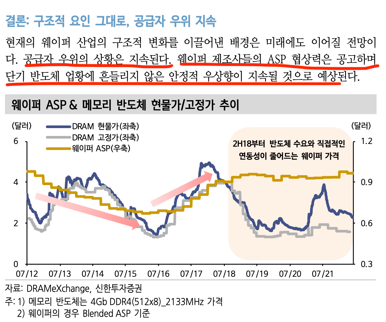 그 이유는 크게 장기 계약과 소수의 웨이퍼 공급사로 한정되어서 공급자 우위의 시장이 형성되었기 때문임